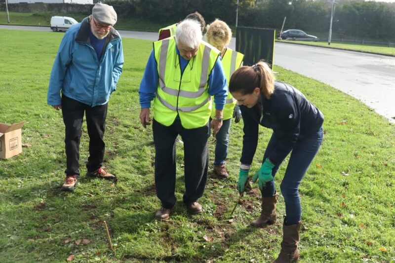 Three Rotary Club members joined Susie Morcom (HR Director) and Ross Geddes (Device Engineer) to plant crocuses on the Plessey Roundabout in Roborough. When they bloom in February, the crocuses will be the same shade of purple as the dye used.